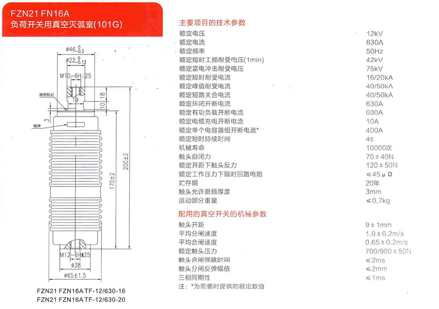 FZN21 FN16A負(fù)荷開關(guān)用真空滅弧室(101F)